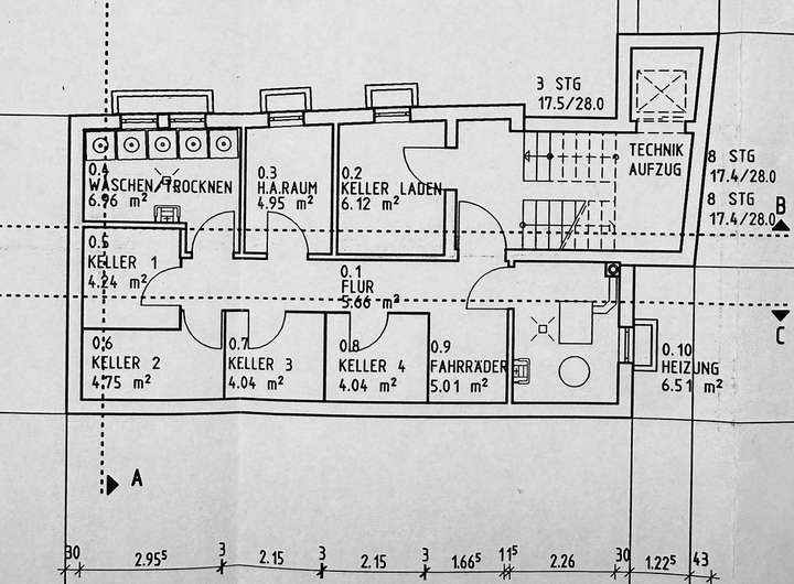 Keller, Fahrstuhl, Vollbad, Fliesen