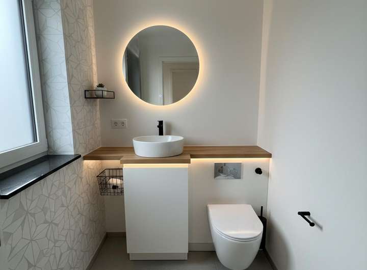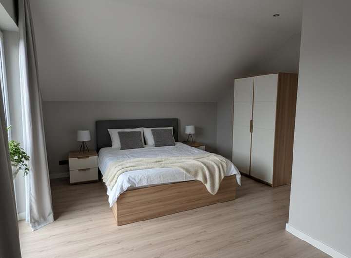 Es handelt sich hier um maßstabgetreue Fotos die mit KI bearbeitet wurden. So oder ähnlich könnten die Räume nach erfolgter Renovierung und mit neuer Ausstattung aussehen.