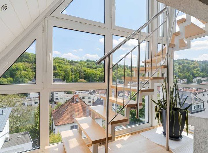 - Helle, großzügige Räume mit hochwertiger Fensterfront im Galeriebereich