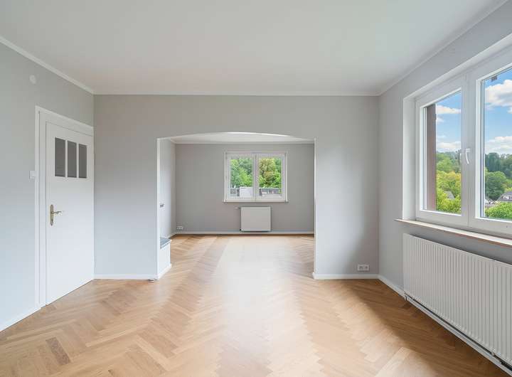 - Fischgrätparkett im Wohn-, Ess- und Eingangsbereich (erneuert ca. 2021)
