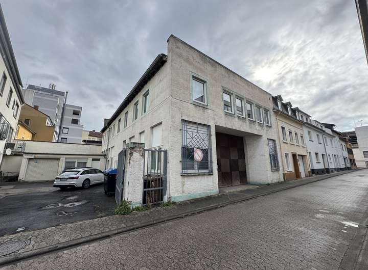 Der hintere Teil des Grundstücks ist mit einer 2-stöckigen Halle bebaut. Die Zufahrt erfolgt durch Vogelgesang. Die Halle ist sanierungsbedürftig.