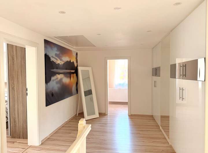 Insgesamt stehen Ihnen hier 4 Zimmer und 2 moderne Badezimmer zur Verfügung. Neben dem großen Kachelofen und der neuwertigen Einbauküche stellt die große, überdachte und nicht einsehbare Terrasse ein weiteres Highlight dieser Immobilie dar.