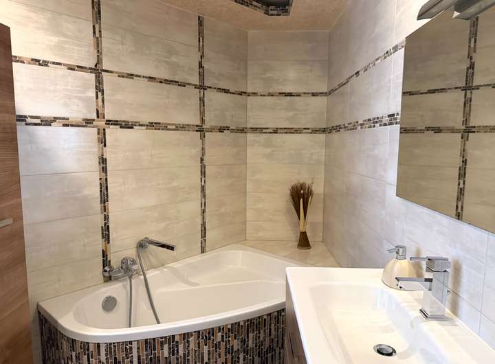 - Fliesenarbeiten - Verlegung neuer Fliesen in beiden Bädern sowie in den Bodenbereichen von Flur und Küche.