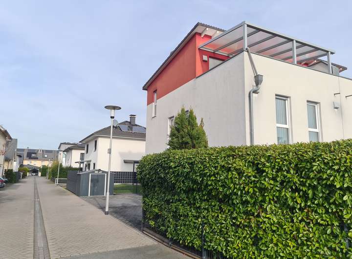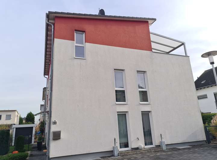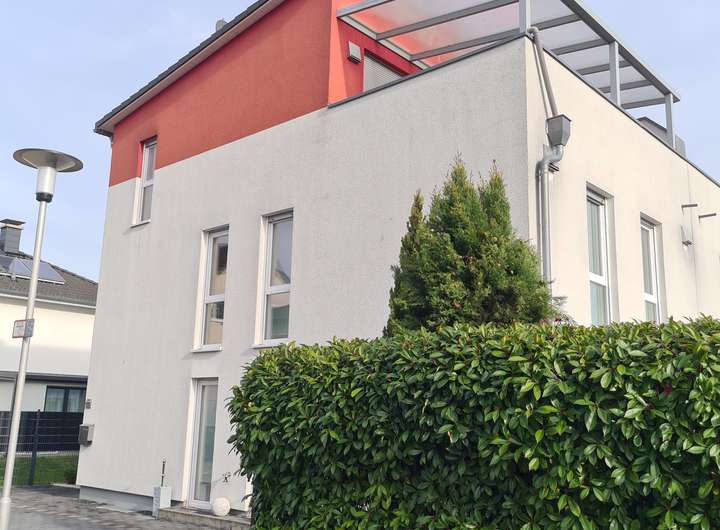 Neuwertige und elegante Doppelhaushälfte in bevorzugter Wohnlage von Weiterstadt; zwei- bis dreigeschossige Bauweise mit Staffelgeschoss und Dachterrasse; sehr geräumig; großzügiges repräsentatives Wohnzimmer mit Ausgang zur Terrasse und dem Garten; helle freundliche Räume mit bodentiefen Fenstern, zwei Tageslichtbäder in den Obergeschossen; zusätzlich komplett ausgebaute, gut nutzbare Kellerräume im Untergeschoss