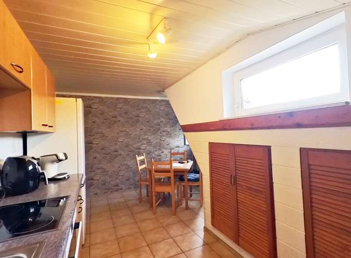 Das Dachgeschoss wurde ca. im Jahr 1994 ausgebaut. Zu der Wohneinheit im Dachgeschoss gehören ein Wohnzimmer, ein Schlafzimmer, ein Kinderzimmer, dieses kann sich hervorragend als Büro oder Hobbyraum nutzen lassen. Des weiteren befindet sich hier eine Küche mit einem Essbereich, sowie ein Tageslichtbad mit einer Dusche und einer Badewanne ausgestattet.