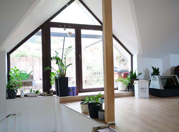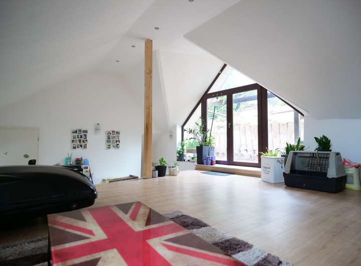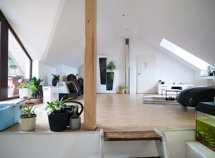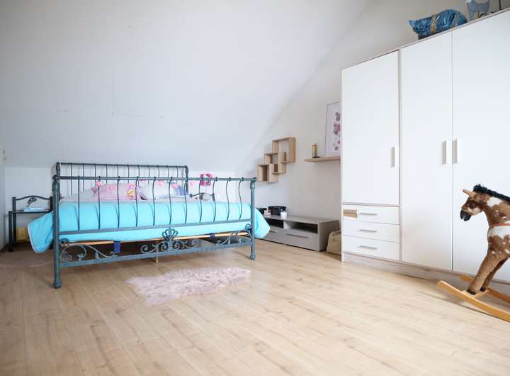 Das Dachgeschoss beeindruckt mit einem großen, lichtdurchfluteten Studio, das sich vielseitig nutzen lässt. Von hier aus gelangen Sie in zwei Kinderzimmer sowie auf die sonnige Dachterrasse – der ideale Ort für entspannte Stunden im Freien.