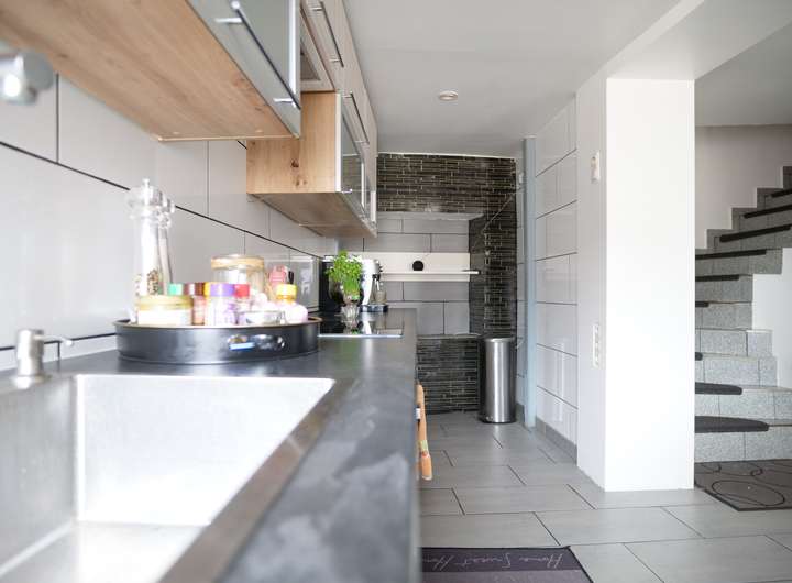 Bereits beim Betreten des Hauses empfängt Sie eine offen gestaltete Diele, die direkt in einen großen Abstellraum übergeht – praktisch und durchdacht. Der anschließende offene Essbereich mit angrenzender Küche lädt zum geselligen Beisammensein ein. Die hochwertige Einbauküche ist erst vier Jahre alt und befindet sich in einem neuwertigen Zustand.