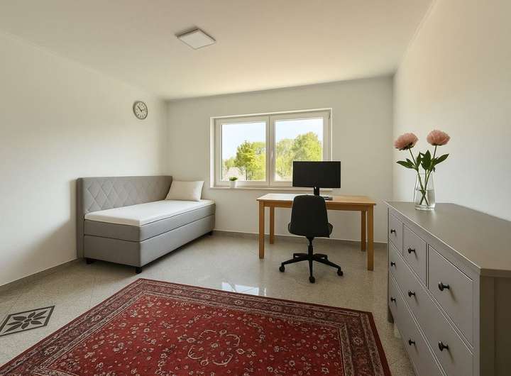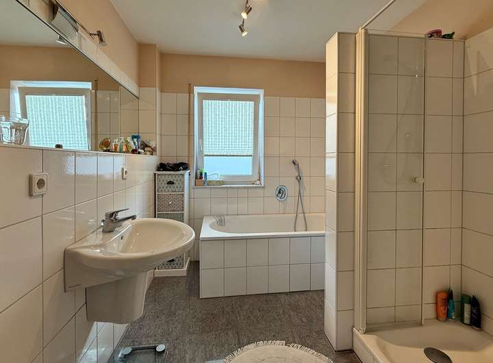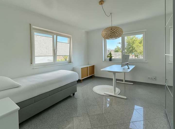 Im Untergeschoss wurden zwei zusätzliche Einheiten wohnlich ausgebaut: eine 2-Zimmer-Einliegerwohnung mit Tageslicht-Duschbad sowie ein großzügiges 1-Zimmer-Apartment mit eigenem Zugang von außen. Diese Flächen sind nicht in der offiziellen Wohnflächenberechnung enthalten – bieten jedoch aufgrund der guten Belichtung und Raumhöhen von 2,60 m vielseitige Nutzungsmöglichkeiten, etwa als Büro, Gästebereich oder für heranwachsende Kinder.