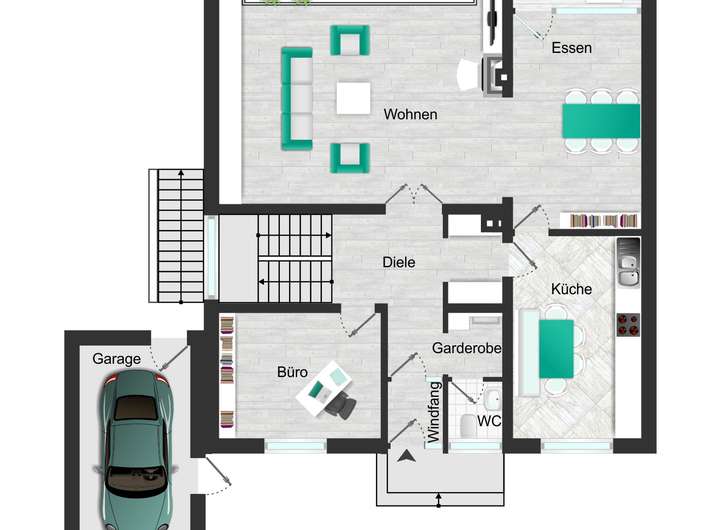 geräumige Garage sowie ein Stellplatz vor dem Haus runden das Gesamtangebot ab.