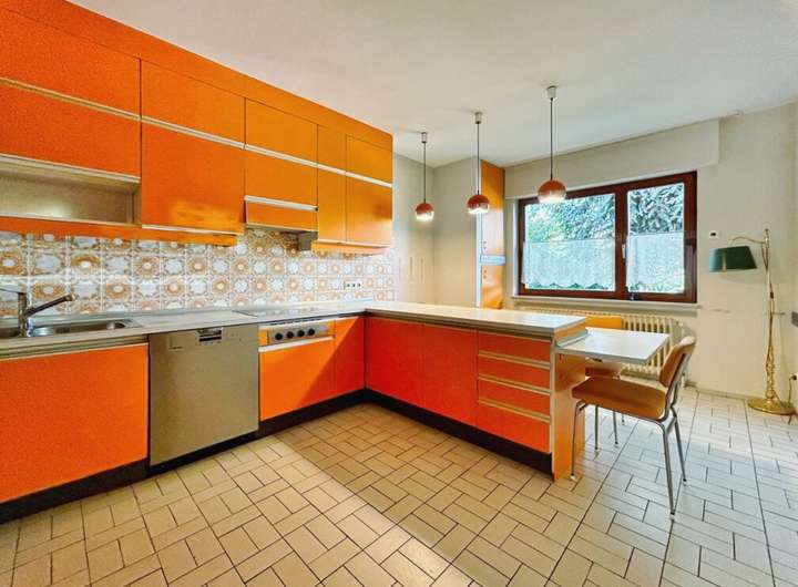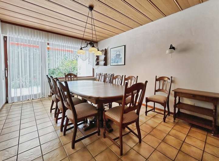 Diese Doppelhaushälfte aus dem Baujahr 1974 bietet ein außergewöhnlich großzügiges Raumangebot, das Familien wie auch Mehrgenerationenhaushalte anspricht. Durch den leichten Versatz zur Nachbarbebauung wirkt das Haus fast wie ein freistehendes Einfamilienhaus.
