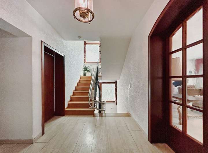 Das Obergeschoss hält drei Schlafzimmer sowie ein Tageslichtbadezimmer bereit. Über eine Flügeltür ist zusätzlich ein praktischer Einliegerbereich angebunden, ausgestattet mit einem weiteren großen Zimmer, einer Küche und einem Badezimmer – ideal für ältere Kinder, Gäste oder als unabhängiger Bereich für Angehörige.