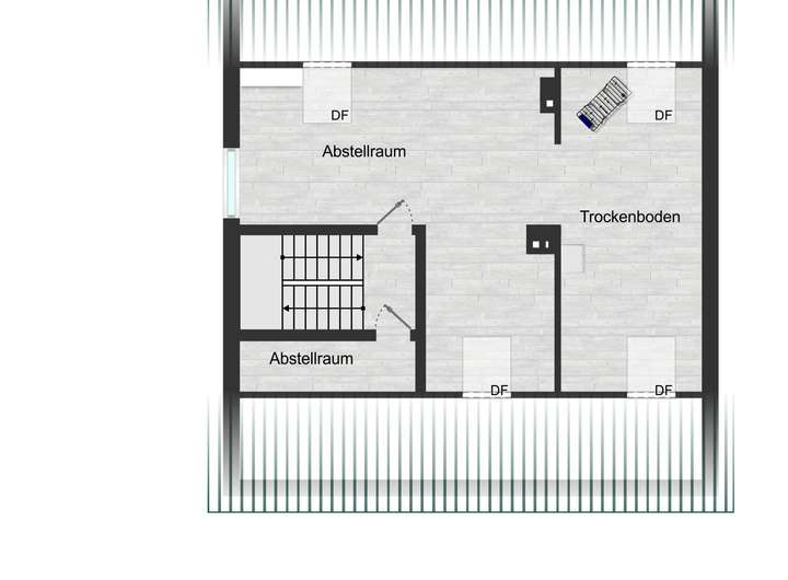 Im Dachgeschoss wurde bereits ein großzügiger Raum samt Badezimmer geschaffen. Durch eine konsequente Modernisierung und Dachdämmung kann hier zusätzliche Wohnfläche entstehen. Im Untergeschoss befindet sich neben dem Hobbyraum mit Tageslicht viel Stauraum: Ob Platz für den Fuhrpark der Kinder oder eine Tischtennisplatte – hier findet alles seinen Raum.