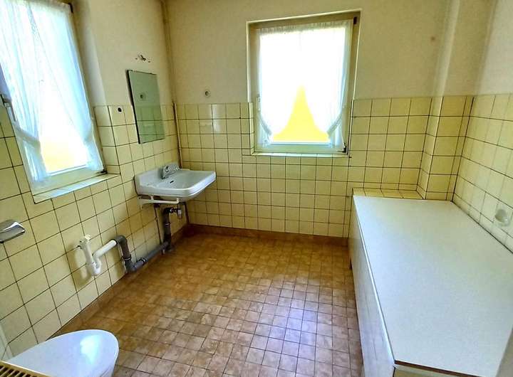 Im Erdgeschoss stehen 3 Zimmer, 1 Wohnküche, 1 Diele, 1 Flur und jeweils auf der Halbetage 1 Bad mit Wanne, Waschtisch, WC bzw. 1 Gäste-WC zur Verfügung.