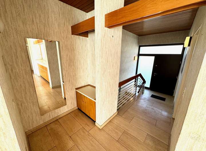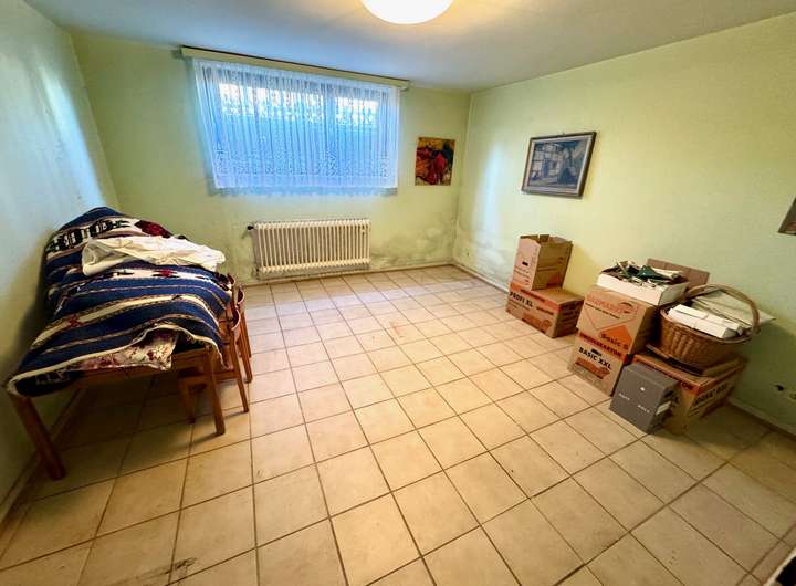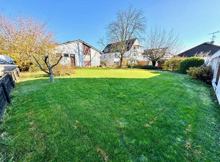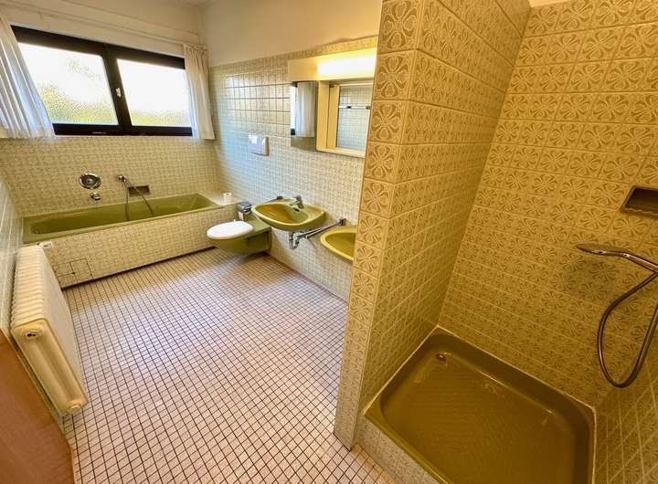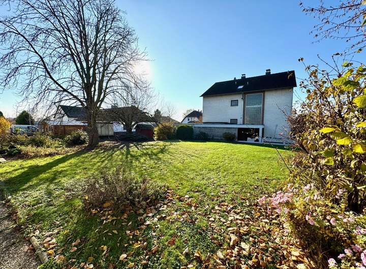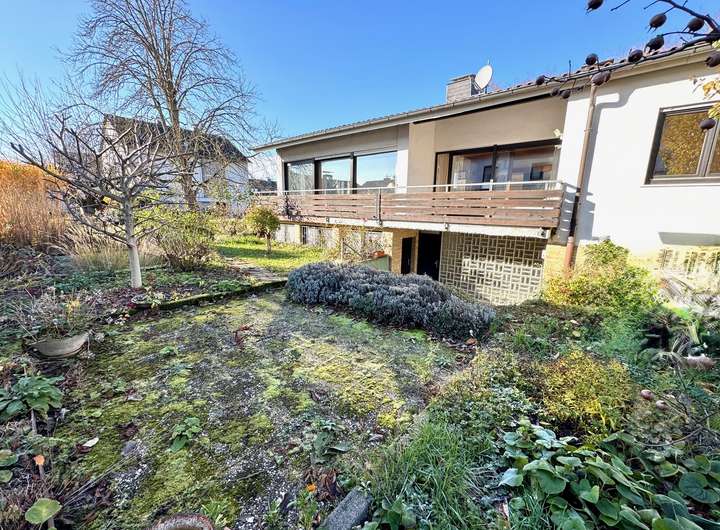 Das gepflegte Einfamilienhaus wurde im Jahr 1971, in einer ruhigen Seitenstraße, auf einem 1053 m² großen Grundstück massiv errichtet. Es verfügt über ca. 265 m² Wohnfläche, aufgeteilt auf das Erdgeschoss und eine Souterrain-Ebene, verbunden durch eine Natursteintreppe. Weitere zusätzliche 75 m² Nutzfläche ermöglichen Ihnen all Ihre Wünsche in Beruf und Freizeit zu verwirklichen. Auf dem herrlichen Grundstück lässt sich das Leben genießen und die Freizeit gewinnbringend gestalten. Das Grundstück ist so groß, das hier problemlos ein weiteres Haus oder zwei Doppelhaushälften neu gebaut werden können. In dem Haus integriert ist eine Doppelgarage mit hoher Decke.