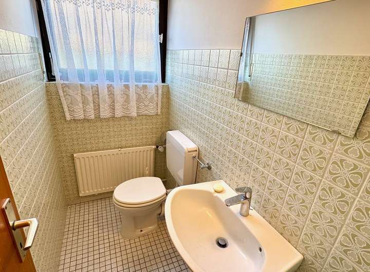 Im Erdgeschoss befinden sich 3 ruhige Schlafzimmer, ein Badezimmer mit Badewanne und Dusche, ein Gäste WC, ein großes und helles Wohnzimmer inkl. Kachelofen, eine praktische Küche und ein offenes großes Esszimmer. Der Balkon erstreckt sich vom Esszimmer über das Wohnzimmer mit direktem Zugang zum Garten. Hier können Sie Ihre Privatsphäre genießen.