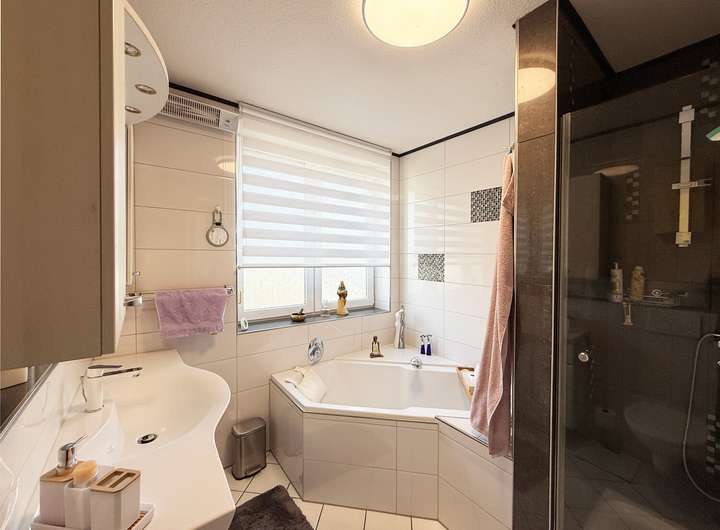 - Modernisiertes Badezimmer mit Dusche und Badewanne (vor 10 Jahren)