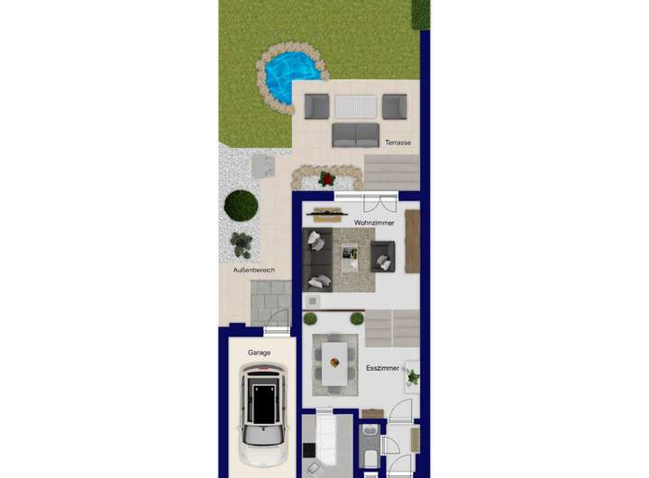 - Pflegeleichter Garten mit Terrasse und kleiner Teichanlage mit Kois (7-8 Tiere)