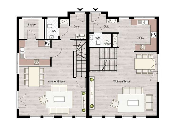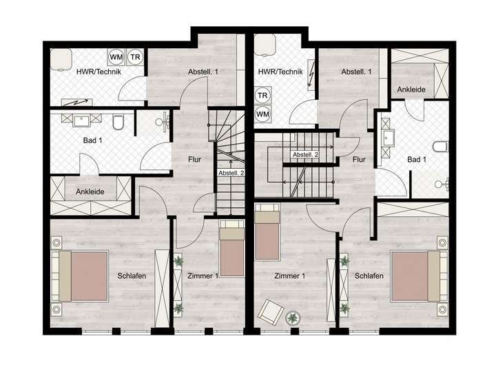 Die Fußbodenheizung sorgt für ein wohliges Raumklima und bietet Ihnen auch mehr Flexibilität in der Möblierung Ihrer Räume. Alle Wohn- und Schlafräume erhalten ein Vollholzparkett aus Eiche. Die Bäder sowie die bodengleichen Duschen sind mit Fliesen, Armaturen und Sanitärartikeln namhafter Hersteller ausgestattet. Die Terrasse wird mit WPC-Dielen hergestellt. Eine Solaranlage auf dem Dach ist vorgesehen. Die Grundrisse können noch nach Ihren Wünschen verändert werden. Wir haben Ihnen 2 mögliche Varianten schon einmal zeichnen lassen.