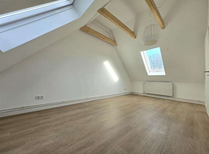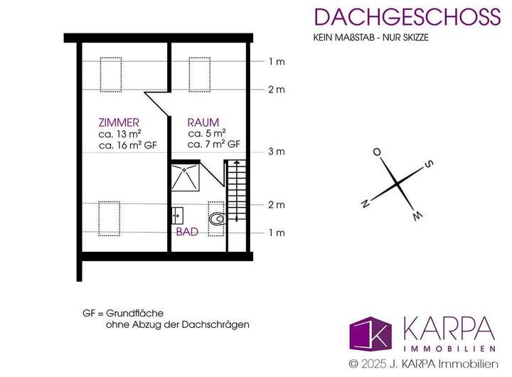 - ca. 13 m² großes Zimmer (ca. 16 m² Grundfläche) mit 2 Dachfenstern