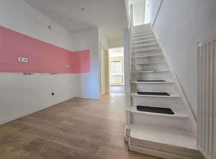 - Laminatboden mit weißen Sockelleisten in den Zimmern, weiße Innentüren, Wände glatt verspachtelt