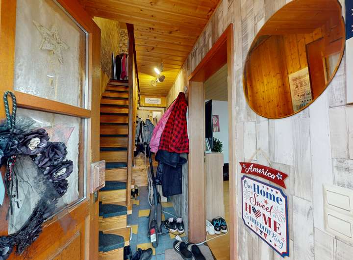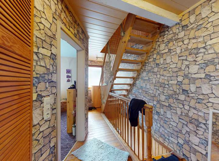 Beim Betreten des Hauses gelangen Sie in den Eingangsbereich mit genügend Stauraum unter der Treppe.