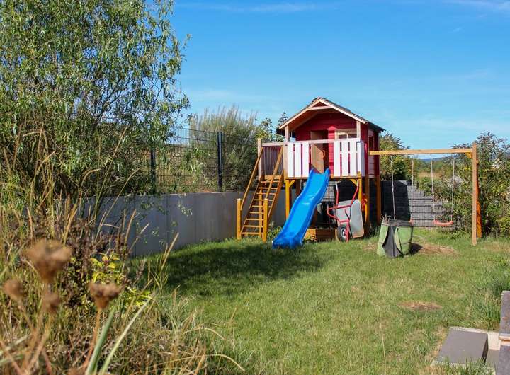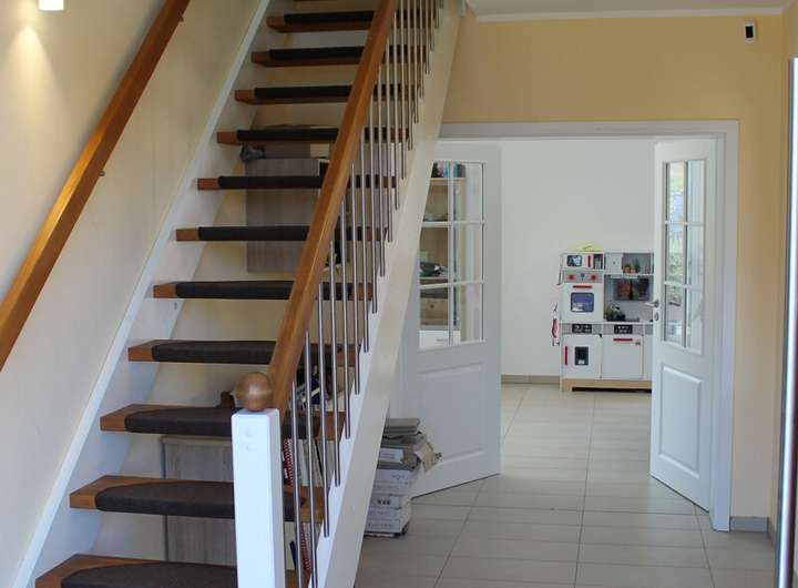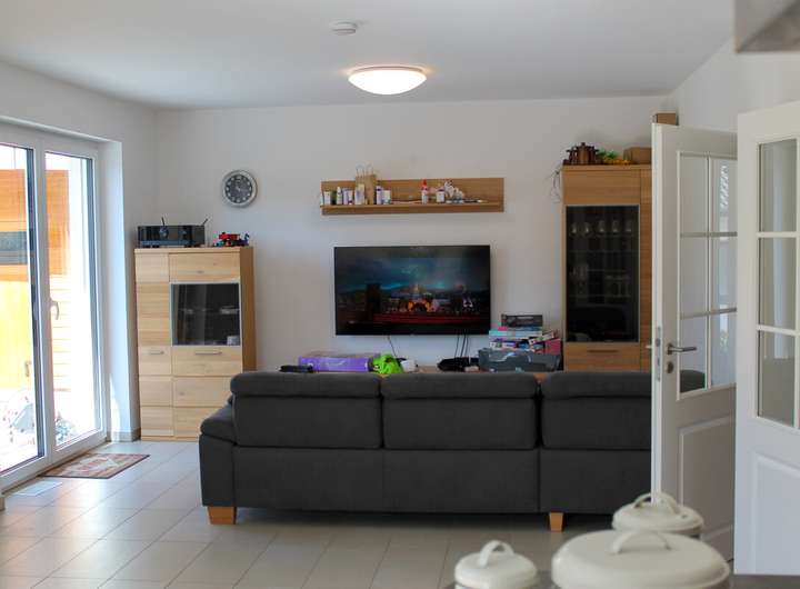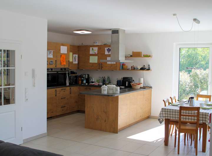 Das Highlight ist das große Wohn-/Esszimmer und offene Küche mit Zugang zur Terrasse. Hier können Sie den Feierabend ungestört im eingewachsenen Garten genießen.