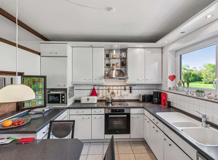 Willkommen in Ihrem neuen Familien-Zuhause in Friedrichsdorf-Seulberg! Mit einer Wohnfläche von ca. 159 m² bietet dieses Haus aus dem Jahr 1977 fünf großzügige Zimmer und zwei Bäder. Bereits beim Eintreten empfängt Sie eine moderne Einbauküche mit praktischer Durchreiche. Das lichtdurchflutete Wohn-/Esszimmer bietet durch eine bodentiefe Glasfront mit Zugang zur Terrasse einen harmonischen Übergang in den liebevoll angelegten Garten, der in den warmen Monaten als blühende Wohlfühloase begeistert. Von der Terrasse aus führt eine Treppe hinunter in den Keller. Ein Gäste-WC, gegenüberliegend der Küche, vervollständigt das Erdgeschoss.