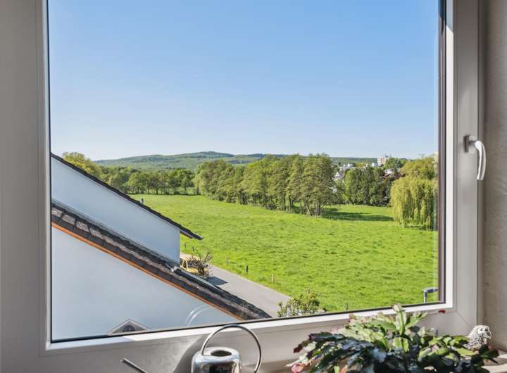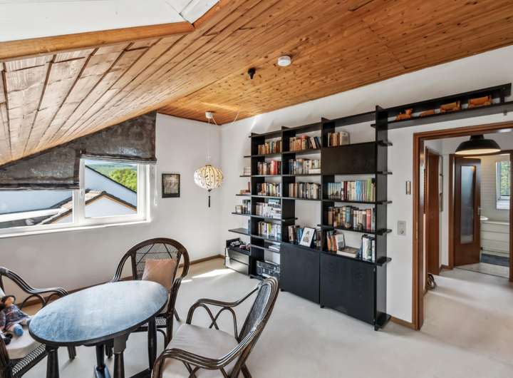 Über eine zum Esszimmer hin offene Treppe gelangen Sie hinauf in das erste Obergeschoss, wo Sie zwei Schlafräume und ein Bad mit Wanne und Dusche bequem nutzen können. Das großzügige Schlafzimmer auf dieser Etage verfügt über einen eigenen Balkon und offeriert bei Bedarf die Möglichkeit zur Unterteilung. Im Dachgeschoss finden Sie zwei weitere Schlafräume vor sowie ein Duschbad. Von hier oben genießen Sie einen wunderbaren Blick ins grüne Bottigtal. Alle drei Stockwerke sind mit einer Fußbodenheizung ausgestattet, die über die Gasheizung für wohlige Wärme sorgt. Im Keller stehen Ihnen – neben dem Heizungsraum – drei vielseitig nutzbare Räume zur Verfügung: ideal für Hobbys, eine Werkstatt oder zusätzlichen Stauraum.