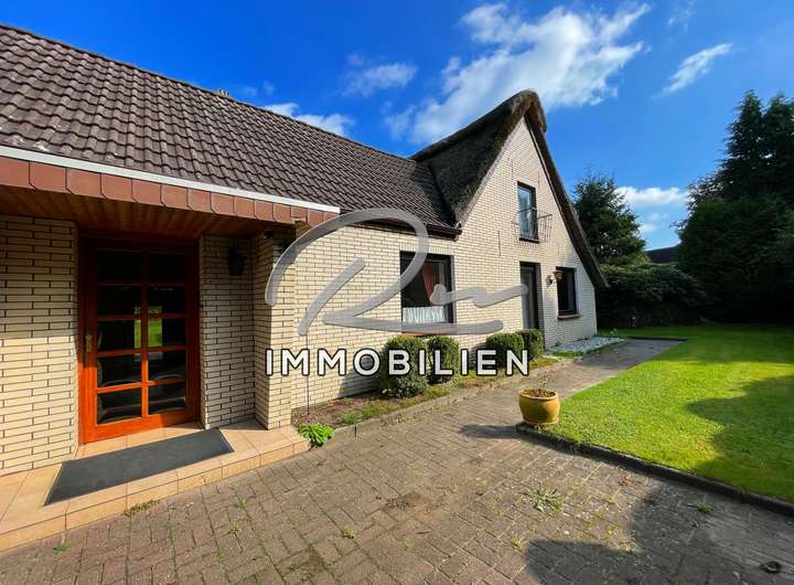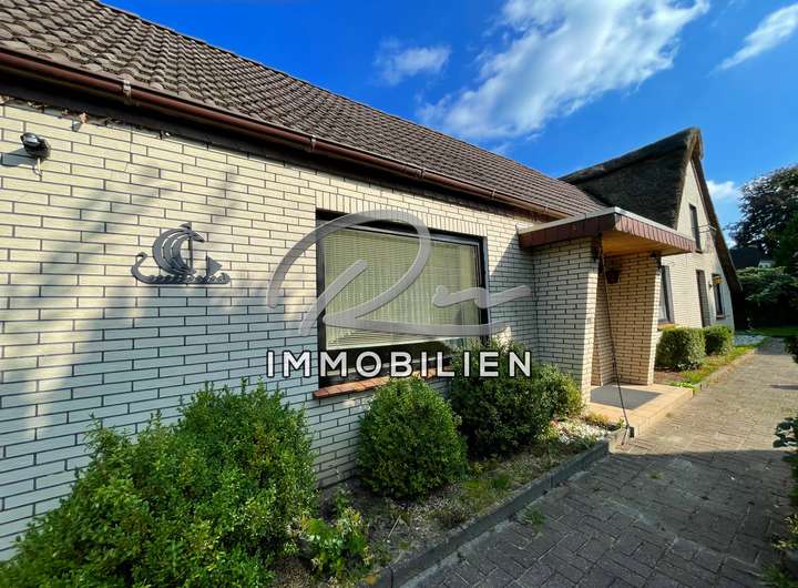 Freistehendes Reetdachhaus + Anbau auf Baugrundstück für ein Einfamilien- oder Doppelhaus