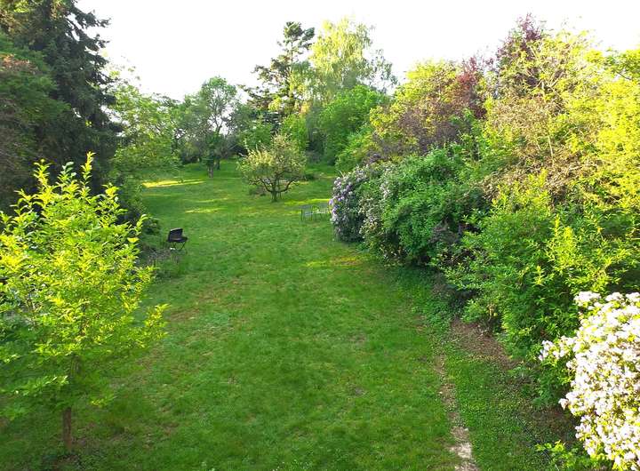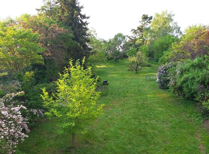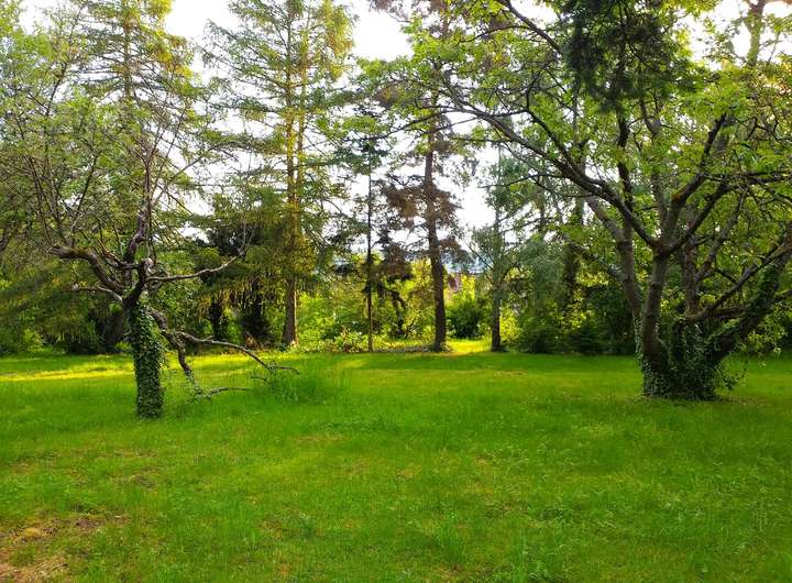 - Parkähnlich angelegte, hintere Rasenflächen mit einer Fläche von insgesamt ca. 2.700 qm (gemäß aktuellem Flächennutzungsplan ausgewiesenes „Bauerwartungsland“).