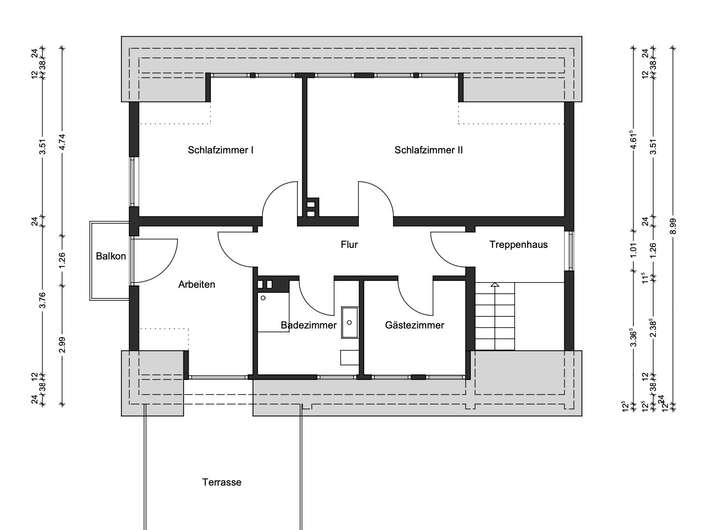 Das Wohnhaus besteht aus einem Keller-, Erd- und einem ausgebauten Dachgeschoss und bietet eine Wohnfläche von insgesamt ca. 167,32 qm. Darüber hinaus bietet das Haus im Kellergeschoss weitere Ausbaumöglichkeiten für eine zusätzliche Wohnfläche von ca. 25,50 qm, sodass das gesamte Wohnhaus eine Wohnfläche von 192,81 qm erhalten kann. Darüber hinaus bietet das Baufeld weitere Optionen für einen weiteren Anbau an das bestehende Wohnhaus im Bereich des hinteren Grundstücks.