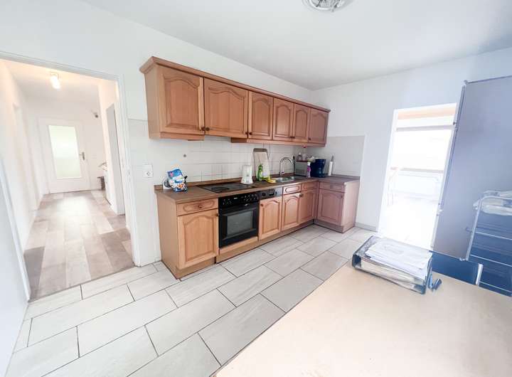 - Küche mit Zugang zu einem französischen Balkon (Richtung Osten) und Zugang zur großen Dachterrasse (Richtung Norden) mit einem phantastischen Ausblick über die Dächer Rauenthals auf die Taunuswälder