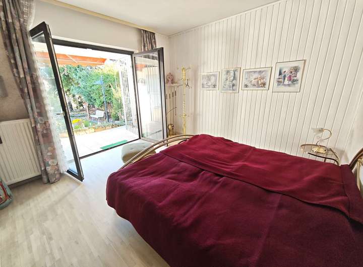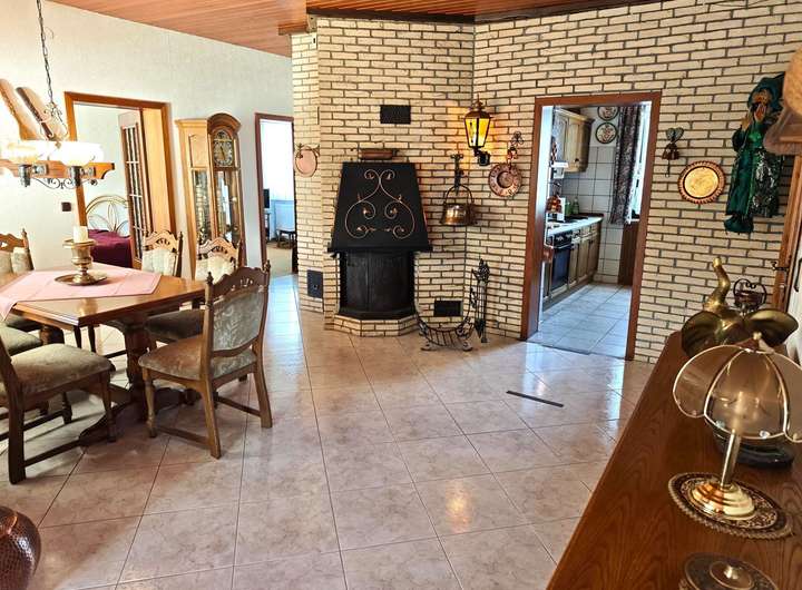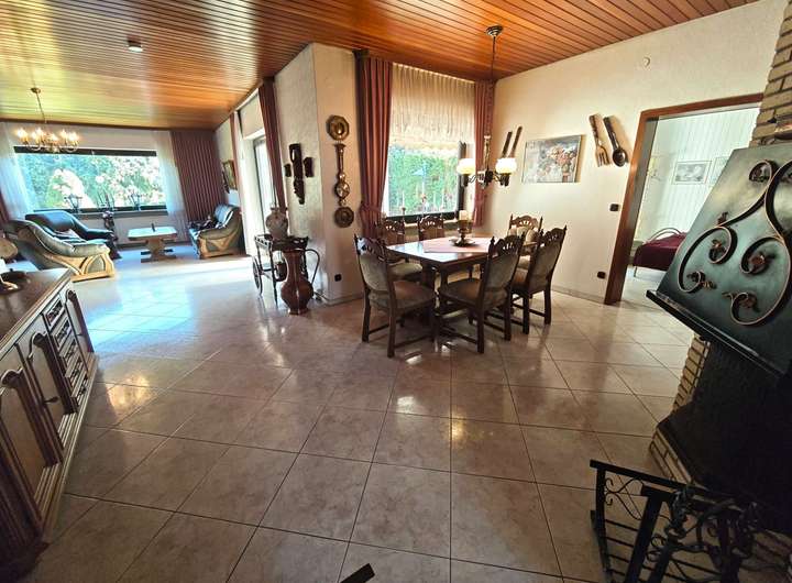 Die 210 m² Wohnfläche des Hauses verteilen sich auf zwei Wohn-Ebenen. Im Erdgeschoss erwartet Sie ein offener Wohn- & Ess-Bereich mit Blick in den liebevoll angelegten Garten. Angrenzend zum Ess-Bereich finden Sie, als besonderes Highlight, einen (offenen) Holz-Kamin, der mit seiner edlen und hochwertigen Optik für gemütliche Abende sorgt. Weiter im EG befindlich, ein modernes Bad, eine praktisch eingeteilte Küche, in der im hinteren Teil eine Speisekammer angebaut ist. So sind Ihre Vorräte immer in greifbarer Nähe. Morgens werden Sie durch warme Sonnenstrahlen geweckt, die durch die zweiflüglige Terrassentür (Terrasse großteils überdacht) ins Schlafzimmer einfallen und gleichzeitig einen wunderschönen Blick in den Garten garantieren. Ein weiteres Zimmer, das als Büro-, Gäste-, oder aber auch als Ankleidezimmer genutzt werden kann, steht außerdem noch zur Verfügung. Das Gäste-WC sowie die Garderobennische befinden sich auf gleicher Ebene, aber außerhalb des Wohnbereiches, zurückversetzt im Treppenhaus.