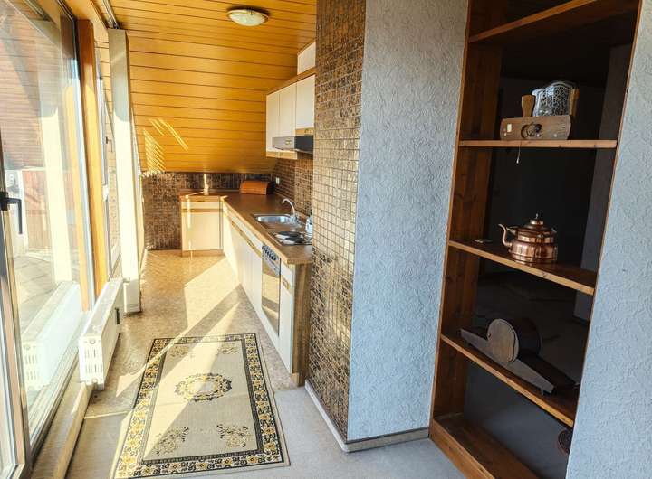 Im Obergeschoss des Hauses befindet sich eine Einliegerwohnung welche durch die Aufstockung entstanden ist. Diese bietet Ihnen einen großen, ebenfalls offenen Wohn-/Ess- & Küchen-Bereich, ein geräumiges Dusch-Bad sowie ein zusätzliches Schlafzimmer. Angrenzend zum Küchen-Bereich haben Sie Zugang zu einem weitläufigem Süd-West Balkon, welcher zum entspannten Sonnenbaden einlädt.