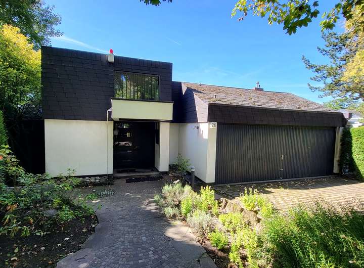 Zum Verkauf steht eine großzügige Villa im Split Level Stil in begehrter Top-Lage von Kronberg-Schönberg auf einem nach Südwesten ausgerichteten ca. 1.169 m² großen Grundstück mit Blick auf die Burgen Kronberg und Falkenstein.