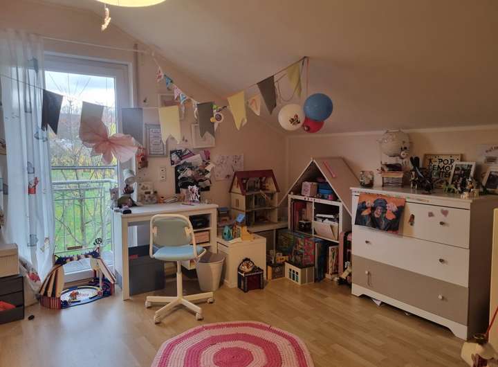 Dieses freistehende und moderne Energiesparhaus liegt in einer ruhigen, familienfreundlichen Lage und bietet unverbauten Blick ins Grüne. Die klare Architektur verbindet helles Wohnen mit praktischer Raumaufteilung. Im Obergeschoss finden Sie drei Schlafzimmer, ideal für Familie, Gäste oder Home-Office. Das Erdgeschoss überzeugt mit einem großzügigen Wohn- und Essbereich, der Nähe zum Garten und viel Raum für gemeinsame Stunden.