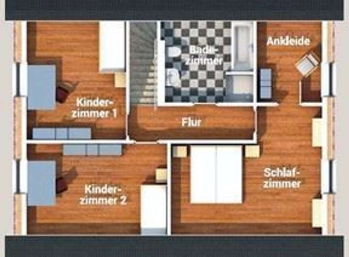 Die Wohn- und Schlafräume im Obergeschoss erreichen Sie über eine hochwertige, offene Holztreppe. Im Obergeschoss wurden die Räume sehr großzügig gestaltet.