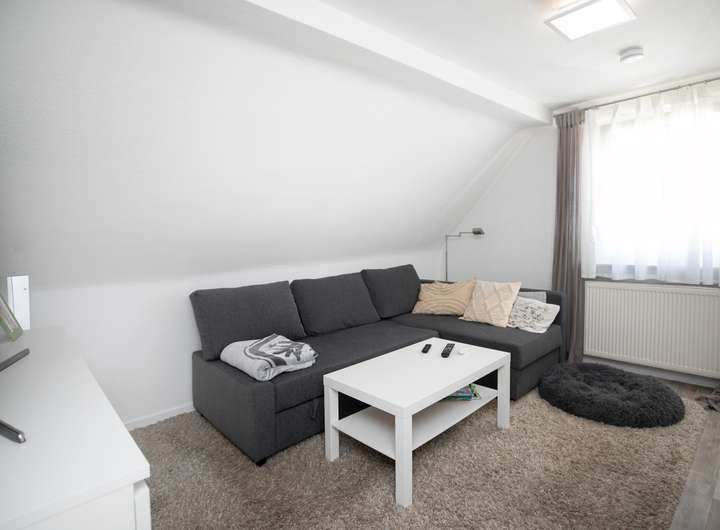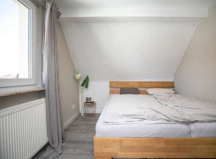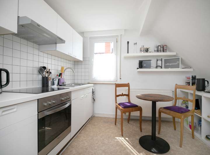 Dachgeschoss: Zwei Zimmer, Küche, Diele und Bad
