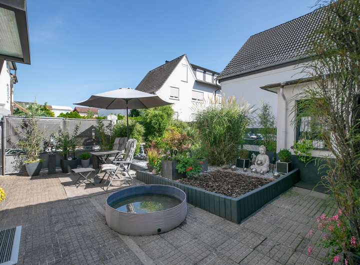 In den Sommermonaten bietet der von außen nicht einsehbare Innenhof viel Platz zum Entspannen oder gemeinsamen Grillen & Chillen mit der Familie und Freunden. Der Innenhof ist liebevoll mit einer Vielzahl von Blumem und Pflanzen pflegeleicht angelegt.