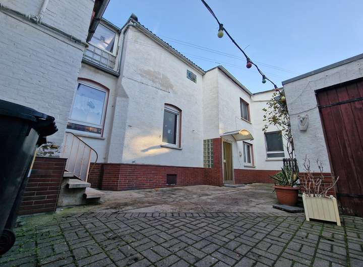 Dieses Zweifamilienhaus verfügt über eine separate Maisonette / Apartment mit separatem Eingang. Dazu gehört ein Innenhof mit Garage und Nebenraum.