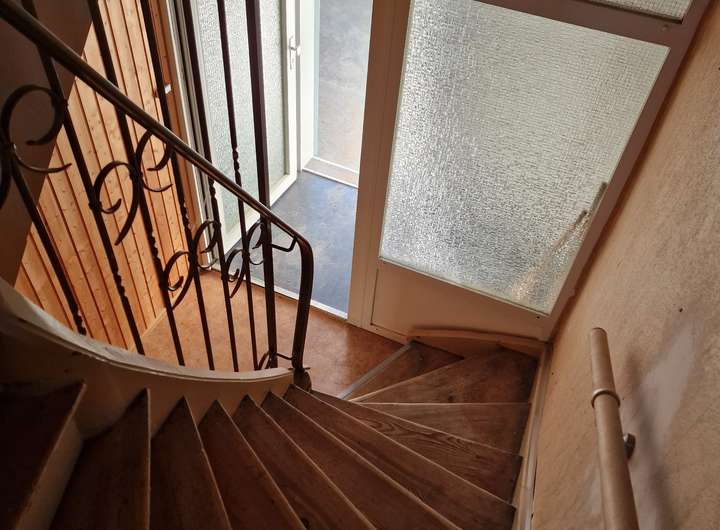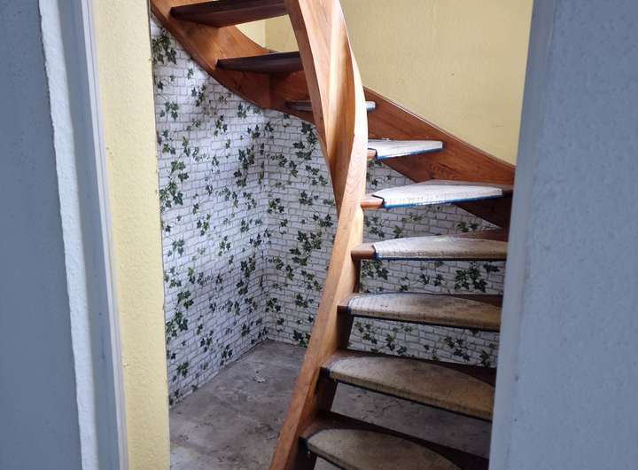 Im Hauptgebäude haben Sie 2 Etagen, jeweils eine EInheit über ein allgemeines Treppenhaus, das in Holz ausgeführt ist. Die Maisonette hat einen eigenen Eingang und verfügt auch über einen eigenen Kellerbereich.