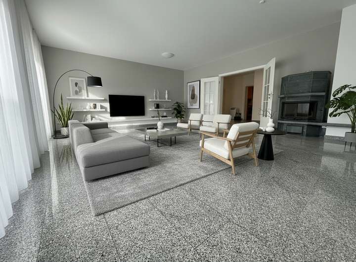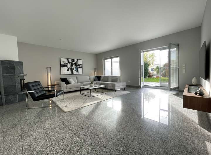 Die großzügigen Zimmer sind mit angenehmer Fußbodenheizung ausgestattet und auch der Speckstein-Ofen sorgt für zusätzliche Gemütlichkeit.