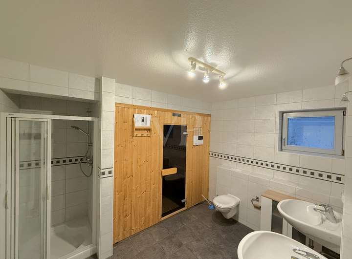 Im Winter können Sie sich in der Sauna und dem unteren Bad einen eigenen Wellnessbereich einrichten.