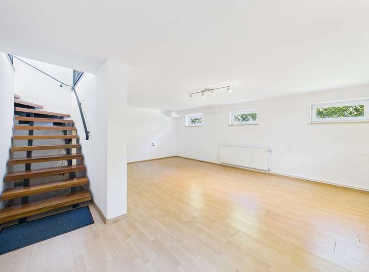 Für zusätzlichen Stauraum sorgt der vollunterkellerte Bereich des Hauses. Hier stehen mehrere Zimmer zur Verfügung, die als Vorratsräume, Hauswirtschaftsraum oder Hobbykeller genutzt werden können – viel Abstellfläche ist somit garantiert. Das Highlight hier ist das großzügige Home-Office mit wohnlichem Charakter. Ideal als Rückzugsort oder einfach auch als Spielzimmer nutzbar.