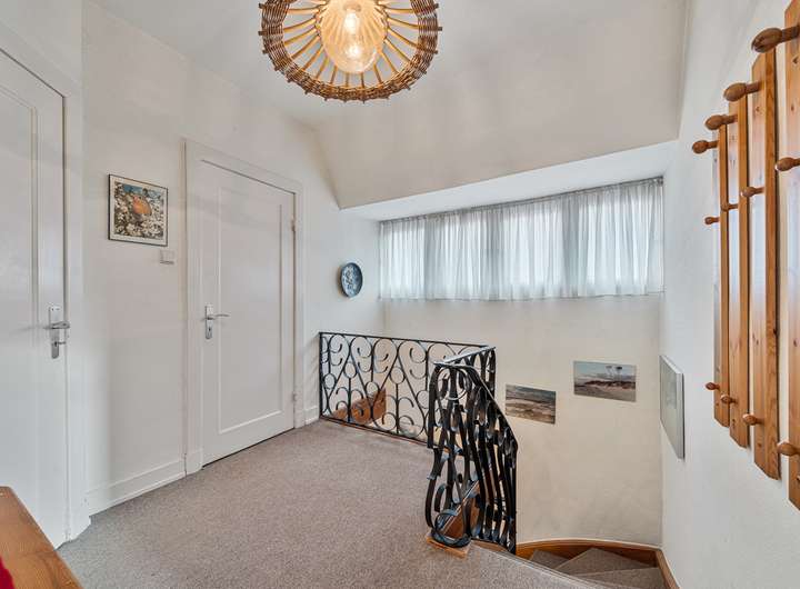 Der besondere Charakter des Hauses wird durch seine klassische Raumaufteilung, die hohen Decken und die angenehme Atmosphäre geprägt. Deckenhöhen im Erdgeschoss überwiegend etwa 2,75 m, im Dachgeschoss etwa 2,68 m. Alte Holztreppenanlage sowie Holzinnentüren. Terrassenanlage und eine reizvolle Veranda mit Südausrichtung, leicht erhöht über dem Grundstück mit sehr reizvollem Blick in den Garten. Der hohe Spitzboden bietet eine Ausbaureserve von etwa 36 m² Grundfläche, die über eine feste Treppe aus erreichbar ist.