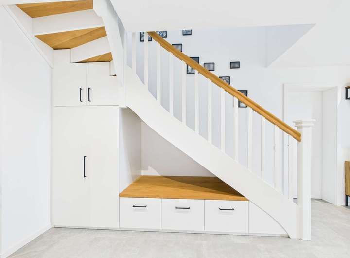 hochwertige Einbauschränke vom Schreiner unter der Treppe