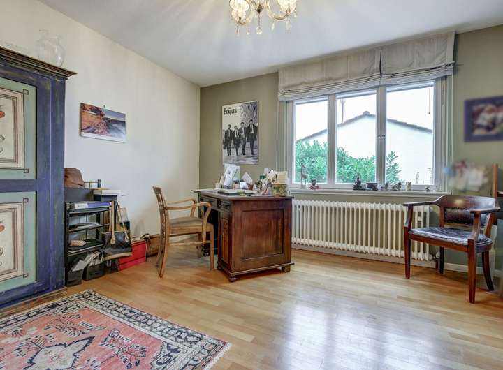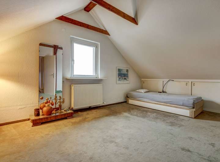 Das Hauptwohnniveau erstreckt sich über ca. 128 m² und bietet durch die freistehende Bauweise und den Anbau eine großzügige, helle Raumaufteilung. Hinzu kommen 2 wohnlich ausgebaute Räume im DG mit ca. 22 m².