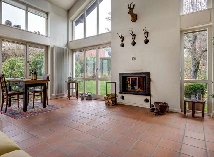 Gleich zwei Kamine - einer im Wohnbereich der ELW und einer im Anbau - sorgen für eine wohlige Atmosphäre an kalten Tagen und machen dieses Haus zu einem ganz besonderen Zuhause. Die große Terrasse lädt zum Entspannen und Feiern ein und bietet den perfekten Übergang zum pflegeleichten Garten, der eine private Oase der Erholung darstellt. Ein Garagenstellplatz rundet das Angebot ab.