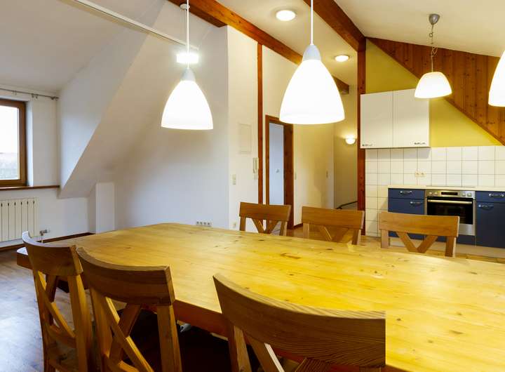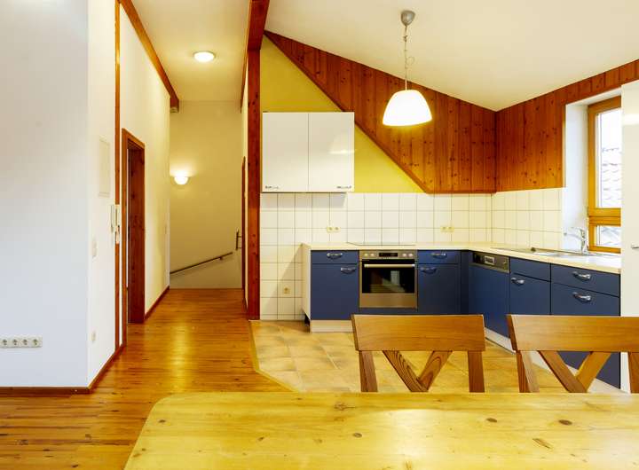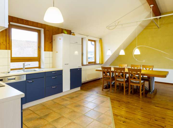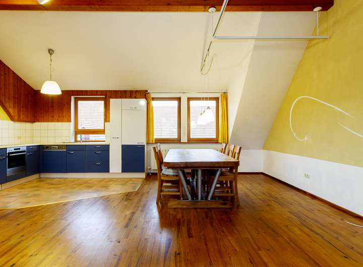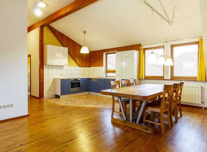 DG: großes Wohn-/Esszimmer mit offener Küche, Schlafzimmer, Bad, Flur