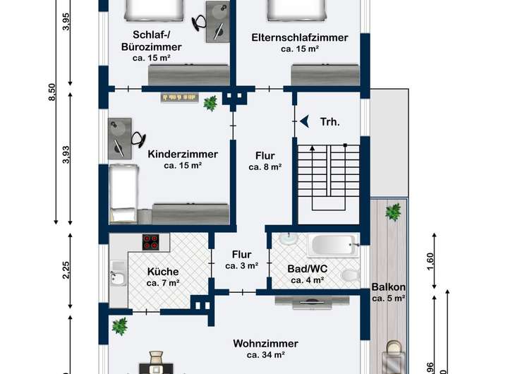 Bitte beachten Sie, dass beide Wohnungen derzeit bewohnt sind und die gezeigten Innenraumfotos mittels KI digital gestaged wurden.